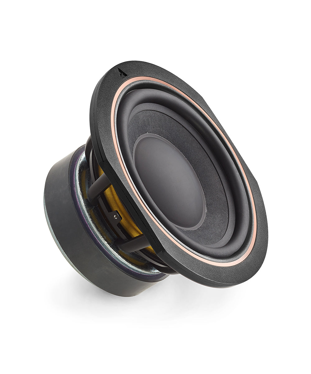 In this 40th Anniversary Series, the unprecedented use of a composite dome in rose gold anodized magnesium, offers the tweeter high efficiency, controlled distortion, and excellent directivity. Magnesium combines two desired qualities: lightness and rigidity. The dome is designed specifically to support the coil, ensuring even and homogeneous alignment. This design also offers high consistency during production.